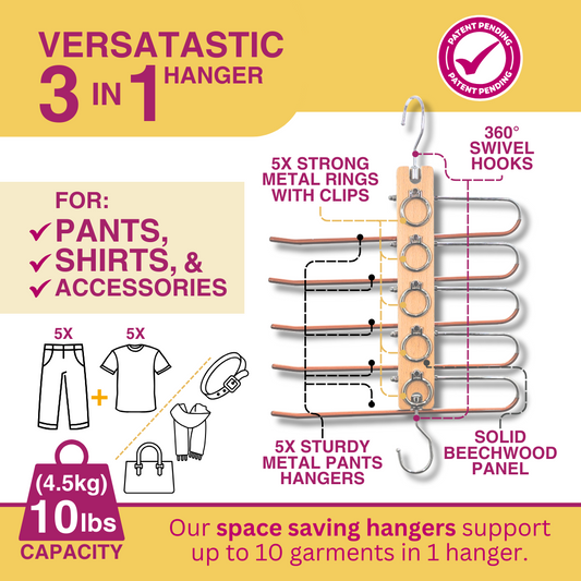 OrganizerTastic VersaTastic- Patented 3-in-1 Space-Saving Hanger